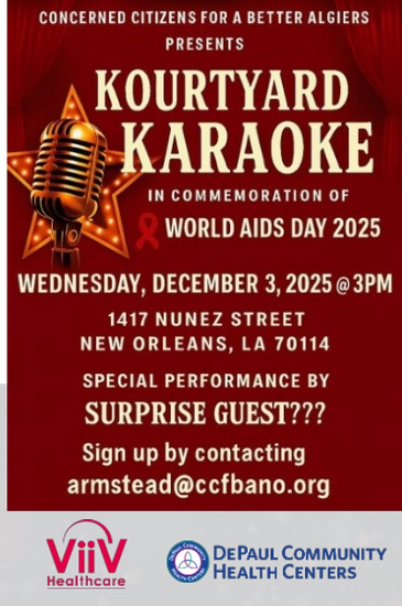 1417 NUNEZ Street - MUSIC and Free testing in honor of World HIV/AIDS day
